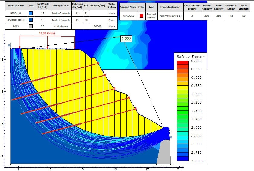 Modelamiento conceptual y determinístico a través de software especializados que trabajan métodos como el equilibrio limite y elementos finitos, teniendo en cuenta los parámetros obtenidos bajo un estudio geotécnico previo y definitivo siguiendo los lineamientos de los códigos y normas colombianas.